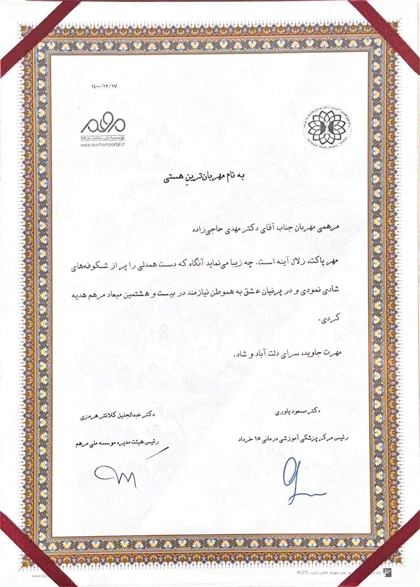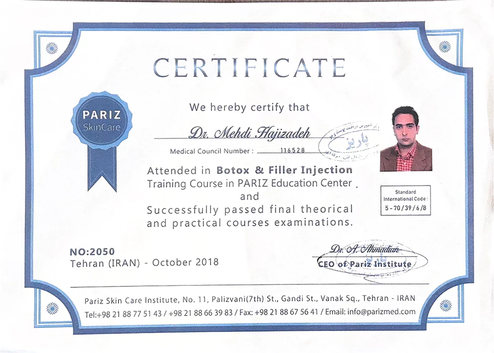 گذراندن دوره های فوق تخصص جراحی پلاستیک در بیمارستان های امام خمینی امیراعلم در دانشگاه علوم پزشکی تهران .